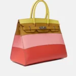 The Hermès Birkin Sellier 35 is a bold and highly collectible interpretation of the iconic Birkin, defined by its sharp lines and structured Sellier construction. This limited-edition example is crafted in Sunrise Epsom leather, a vibrant, statement-making hue that embodies Hermès’ mastery of color. The embossed Epsom leather provides a crisp silhouette with excellent shape retention, while sleek palladium hardware (PHW) adds a modern, refined contrast.