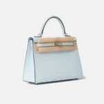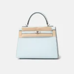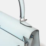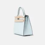The Hermès Kelly 25 is a timeless icon, celebrated for its elegant proportions and refined craftsmanship. This example is crafted in Bleu Brume Epsom leather, a soft blue-grey shade with an airy, modern feel. The structured, embossed Epsom leather offers excellent shape retention, while palladium hardware (PHW) provides a sleek and contemporary contrast.