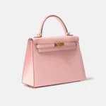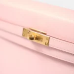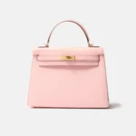 The Hermès Kelly 25 is a timeless icon, admired for its elegant proportions and exceptional craftsmanship. This brand new example is crafted in Rose Sakura Chèvre Mysore leather, a delicate pastel pink shade paired with Chèvre Mysore’s fine, lightweight grain and subtle natural sheen. Known for its durability and excellent shape retention, this leather is perfectly suited to the Kelly’s structured silhouette. The soft hue is beautifully complemented by gold-plated hardware (GHW) for a refined, feminine finish.