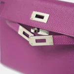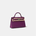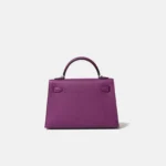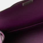 The Hermès Mini Kelly 20 is one of the house’s most coveted silhouettes, admired for its petite proportions and timeless elegance. This example is crafted in striking Anemone Epsom leather, a deep, vibrant purple tone paired with Epsom’s signature embossed grain for a crisp, structured silhouette. The bold color is beautifully balanced by sleek palladium hardware (PHW) for a refined, modern finish.