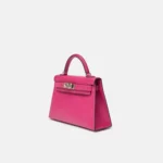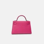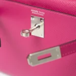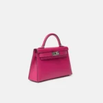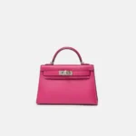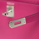 The Hermès Mini Kelly 20 is one of the house’s most coveted silhouettes, admired for its compact proportions and timeless elegance. This example is crafted in rich Rose Pourpre Epsom leather, a deep, sophisticated pink with purple undertones. The structured, embossed Epsom leather is paired with sleek palladium hardware (PHW), creating a refined and modern contrast.